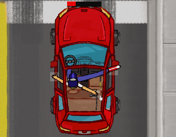 - Click the mouse on one the driver's hands or their foot to move it around.